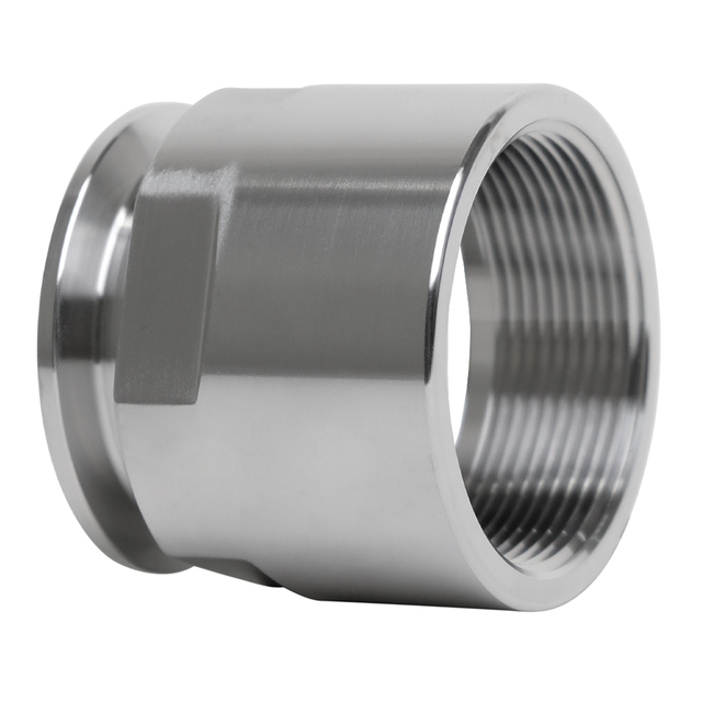 The 22MP Tri-Clamp and Female NPT Adapter is a popular sanitary clamp fitting designed to connect Tri-Clamp ferrules to male NPT pipes, valves, or equipment. It comes in two materials, 304 and 316L stainless steel, and a variety of sizes. The tube has an outside diameter (O.D.) of ½" up to 4". The female NPT threaded connection ranges in size from ¼" to 4".