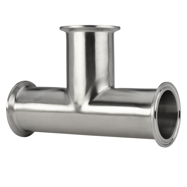 The 7MP Tri-Clamp Tee is a sanitary fitting with Tri-Clamp ferrules. It comes in two materials, 304 and 316L stainless steel, and a variety of sizes. The tube has an outside diameter (O.D.) of ½" up to 12".