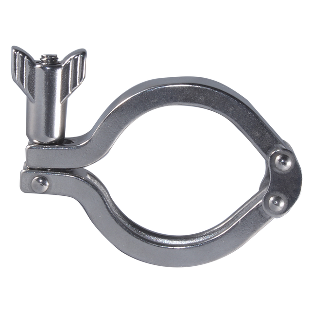 The Double-Pin Heavy-Duty Tri-Clamp is for use with Tri-Clamp ferrules. The double hinge design allows for even pressure distribution. This Tri-Clamp sanitary fitting is made of 304 Stainless Steel and is 3A certified. Other sizes are available upon request. Please call with any inquiries.