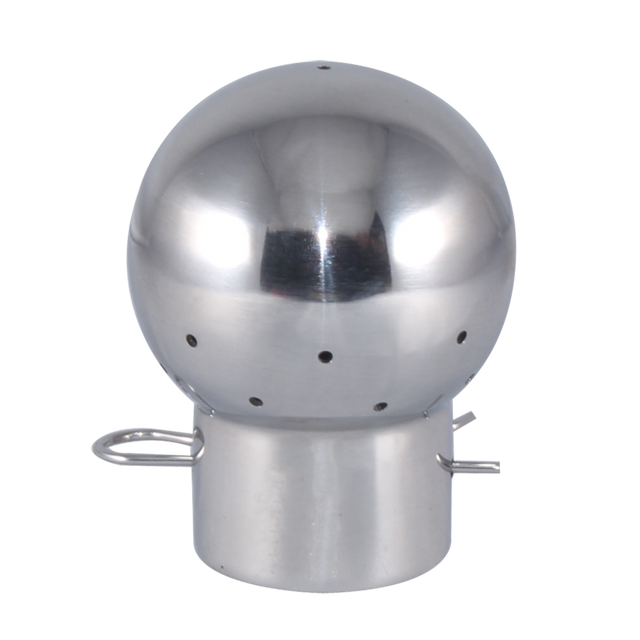 The stainless steel stationary spray ball is designed to clean tanks and other processing equipment. This spray ball has a butt weld end with a pin that is used to secure it into place on tubing. The static spray ball is available in two different sizes and in three different spray patterns. A streamline design with minimal moving parts, makes this spray ball sanitary, easy to clean, low maintenance, and extremely durable. An efficient spray ball cleans better with less water than manual cleaning.
