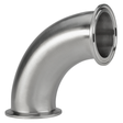 The 2CMP Tri-Clamp 90° Elbow is a sanitary fitting designed to offer a secure leak-proof connection. It comes in two materials, 304 and 316L stainless steel, and a variety of sizes. The tube has an outside diameter (O.D.) of ½" up to 12".
