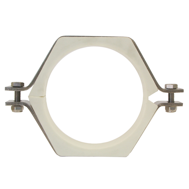 The 24PV Hex Pipe Hanger with a Polypropylene Sleeve is designed to support sanitary piping in processing industries. This sanitary pipe hanger can be installed in a variety of ways, such as suspended from a rod or welded into place. The polypropylene insert provides a barrier between the metal piping and the metal hanger for lower vibrations and a more secure fit. This high quality pipe hanger is durable, strong, corrosion resistant, and is has a high temperature tolerance. The 24PV Hex Pipe Hanger is available in a range of sizes between 1/2" and 12". For sizes above 4" please contact our team for a special order.