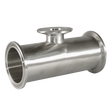 The 7RMPS Tri-Clamp Reducing Short Outlet Tee is a sanitary fitting featuring a shortened branch with a smaller Tri-Clamp ferrule. The shortened branch creates less dead space when attaching instruments to a production line, which makes it easier to fully CIP. The short outlet tee is made of 316L or 304 stainless steel and is designed for use in sanitary applications.