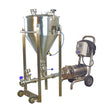 The MH-20 Hop Induction System (HIS) greatly increases the ease and safety of the dry hopping process. Attached to select centrifugal or shear pumps, the MH-20 HIS hygienically suctions hops into your beer with minimal oxygen introduction. This completely eliminates the need for scissor lifts or shaky ladders, decreasing workload and greatly increasing safety. With the MH-20 HIS just load your hops, start your pump, turn the valve, and within minutes your hops are in the tank. We have added a pneumatic vibrator to the hopper to improve the flow of the hops and to help prevent bridging and clogs.