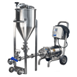 The MH-20 Hop Induction System (HIS) greatly increases the ease and safety of the dry hopping process. Attached to select centrifugal or shear pumps, the MH-20 HIS hygienically suctions hops into your beer with minimal oxygen introduction. This completely eliminates the need for scissor lifts or shaky ladders, decreasing workload and greatly increasing safety. With the MH-20 HIS just load your hops, start your pump, turn the valve, and within minutes your hops are in the tank. We have added a pneumatic vibrator to the hopper to improve the flow of the hops and to help prevent bridging and clogs.